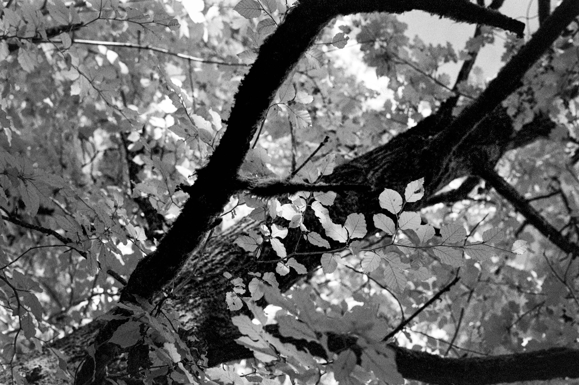 Das Ergebnis ist zum großen Teil tatsächlich so geworden, wie ich es erhofft hatte. Der versprochene Wood-Effekt ist teilweise sehr deutlich sichtbar. Allerdings habe ich den Film entweder zu lange belichtet oder beim Entwickeln nicht genau genug auf die Zeit geachtet. Die Bilder sind tendenziell etwas zu hell geworden. Die Körnung ist mit dem Infrarotfilter ähnlich wie auch mit dem Rotfilter deutlich sichtbar. Bei den Aufnahmen, die ohne Filter gemacht wurden, tritt das Korn nicht so stark in den Vordergrund. Ich werde das auf jeden Fall in Zukunft noch einmal ausprobieren und bei Fokus, Belichtungszeit und Entwicklungszeit deutlich präziser arbeiten.