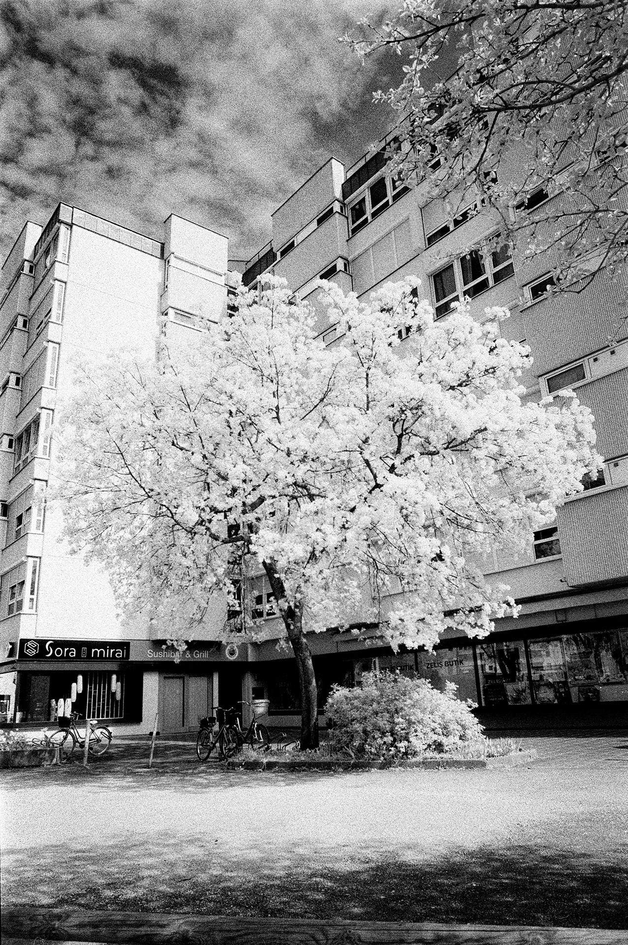 Es war erwartungsgemäß knallrot aber ich habe das RAW in Lightroom importiert und am Weißabgleich gedreht. Die Ergebnisse finde ich spektakulär und sehr künstlerisch. Man sieht auch, dass das von mir verwendete Zeiss Planar 1.4/50 im Zentrum ein anderes Verhalten aufweißt als an den Rändern. Das hier aufgeführte Ergebnis ist bei spiegellosen Kameras wie der Zfc schon im elektronischen Sucher so sichtbar – das ist natürlich ein großer Vorteil gegenüber der Fotografie mit Film. Besonders die in Schwarz-Weiß umgewandelten Bilder finde ich sehr gut und vergleichbar mit Infrarot-Film.