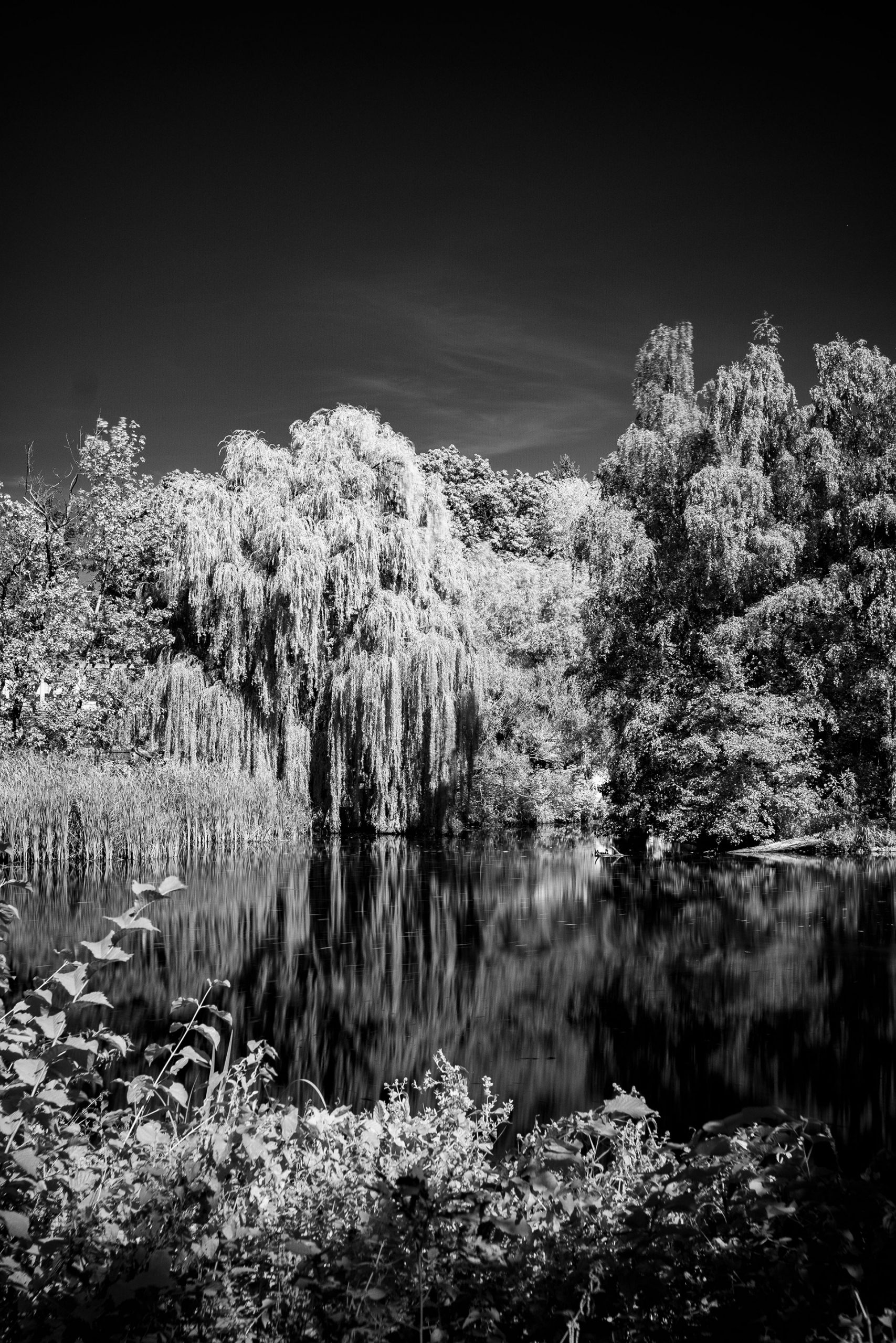 Nach zwanzig Jahren Digitalfotografie war es an der Zeit etwas Neues auszuprobieren. Bei Landschaftsaufnahmen stießen mir immer wieder faszinierende Fotos ins Auge von Bäumen mit weißen Blättern oder pechschwarzem Himmel. Das sind meistens Fotos, bei denen das Infrarotspektrum fotografiert wurde.