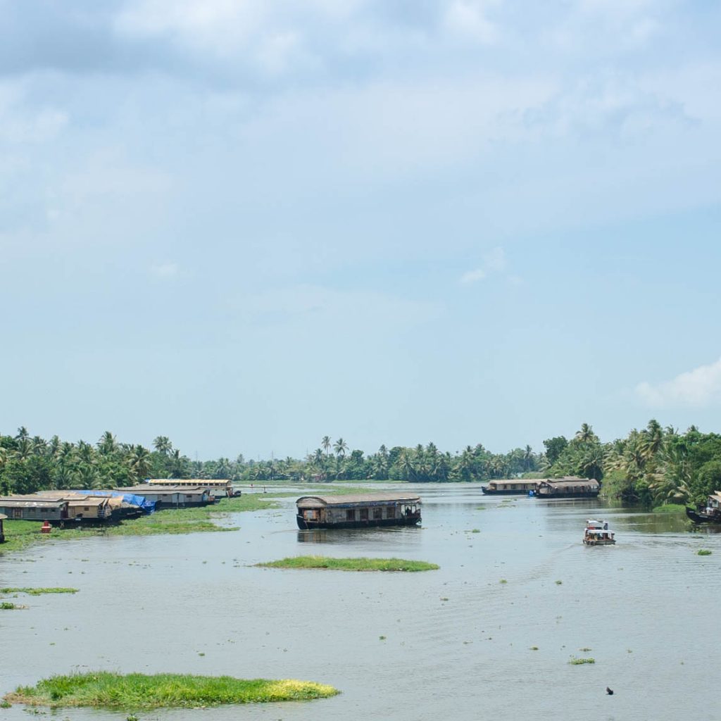Die Backwaters sind ein großes und verwobenes Netz von Kanälen und Flüssen parallel zur Küste der Arabischen See. Die Brackwasserkanäle erstrecken sich über eine Fläche von 1900 Quadratkilometer und laden zu Ausflügen mit Hausbooten ein. Man kann sich dabei wunderbar entspannen und mit herrlichem Indischen Essen verwöhnen.