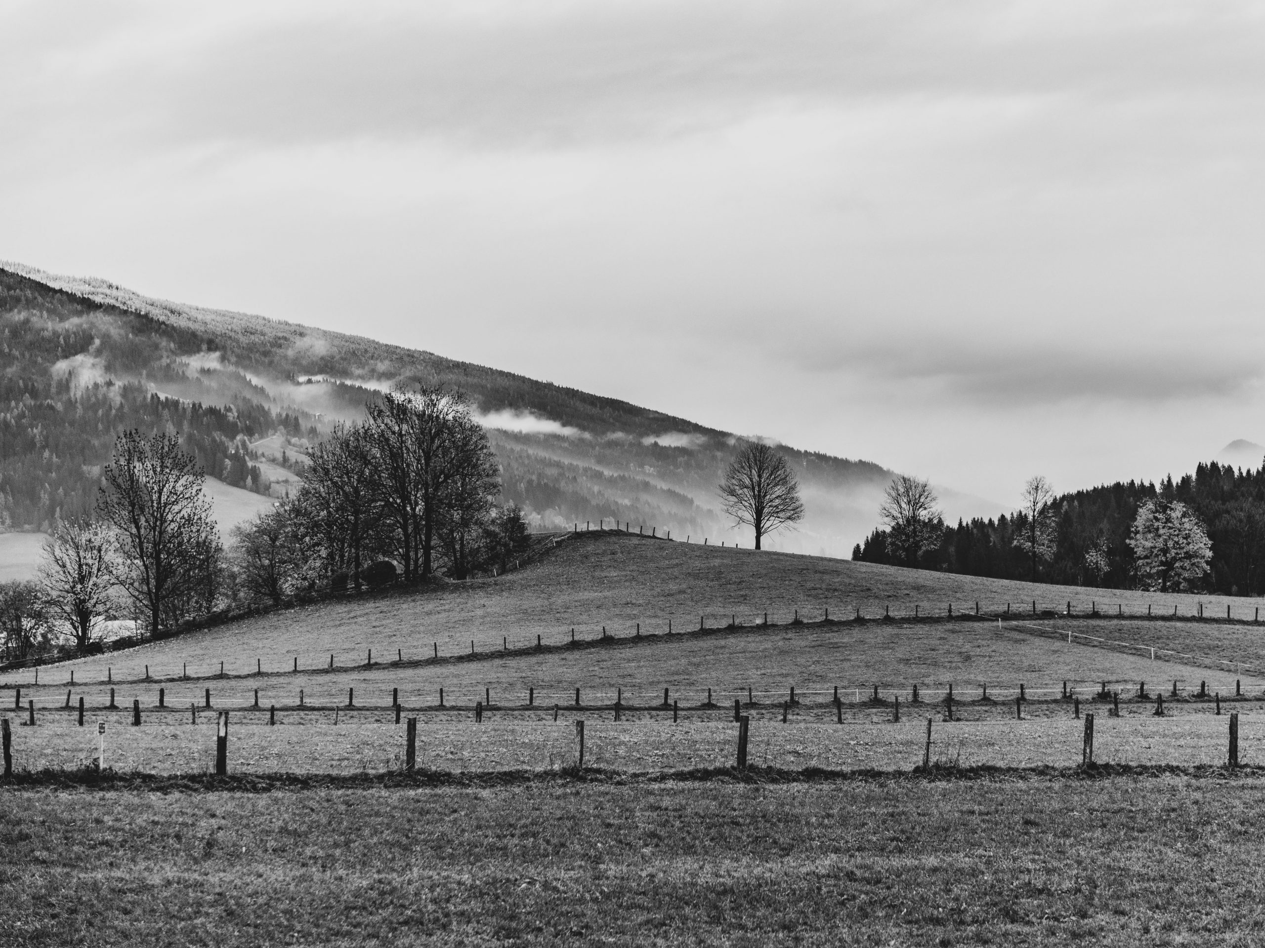 Deshalb hier wie auch bei schönem Wetter die klassischen Tipps der Landschaftsfotografie: Eine gute Komposition suchen aus Vorder, Mittel und Hintergrund. Führende Linien suchen wie Wege, Zäune oder Bergketten um den Betrachter ins Bild zu ziehen. Wolken und Nebel, die Teile der Landschaft verdecken, verstärken diesen Effekt eindrucksvoll.