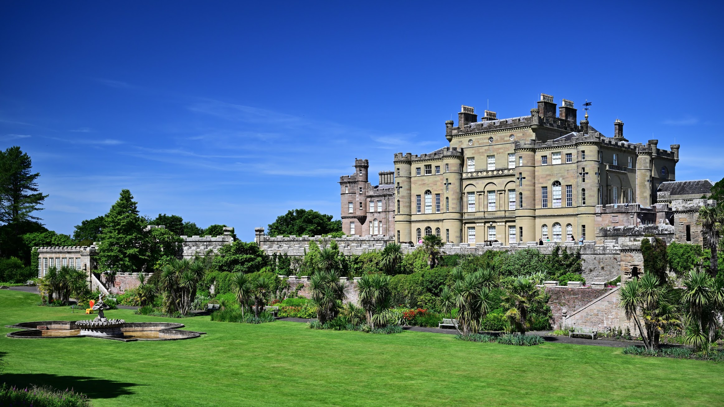 Etwas weiter entfernt, rund 27 Meilen südlich, liegt Culzean Castle, ein prachtvolles Schloss zwischen Maybole und Maidens an der Küste von South Ayrshire. Es wurde zwischen 1777 und 1792 erbaut und thront auf einem steil abfallenden Felsen direkt am Meer. Besonders beeindruckend ist der riesige Schlosspark mit Schwanensee und ein “Walled Garden”. Das Areal ist so weitläufig, dass es mit dem Auto befahren werden darf, um die verschiedenen Bereiche bequem zu erreichen.