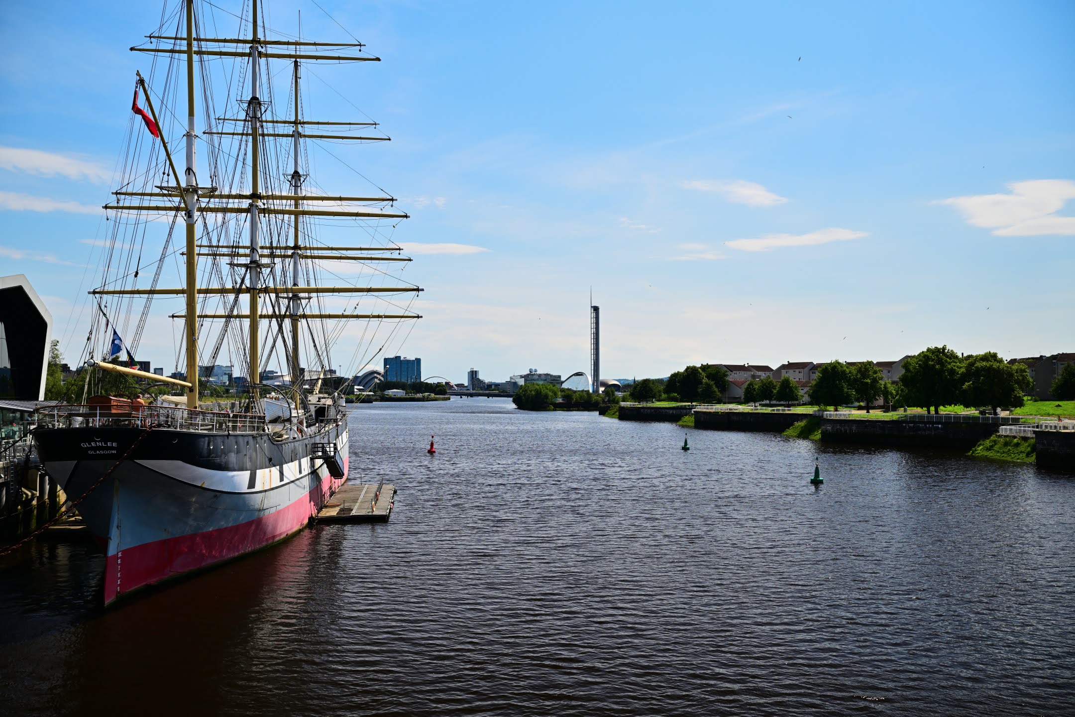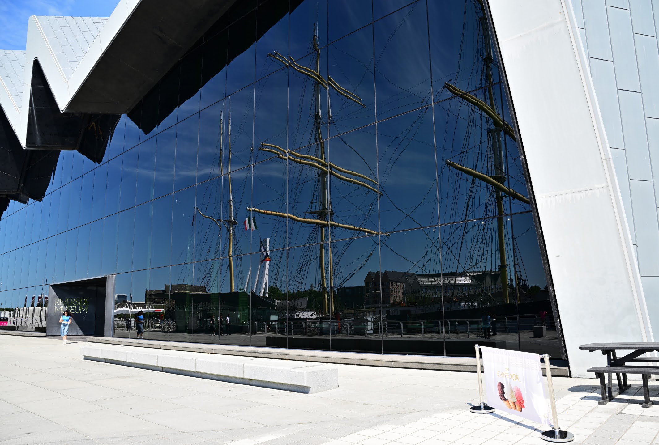 Vor dem Museum liegt die Glenlee, eine 129 Jahre alte stählerne Bark. Die bewegende Geschichte des Schiffes kann auf Tafeln vor dem Museum studiert werden.