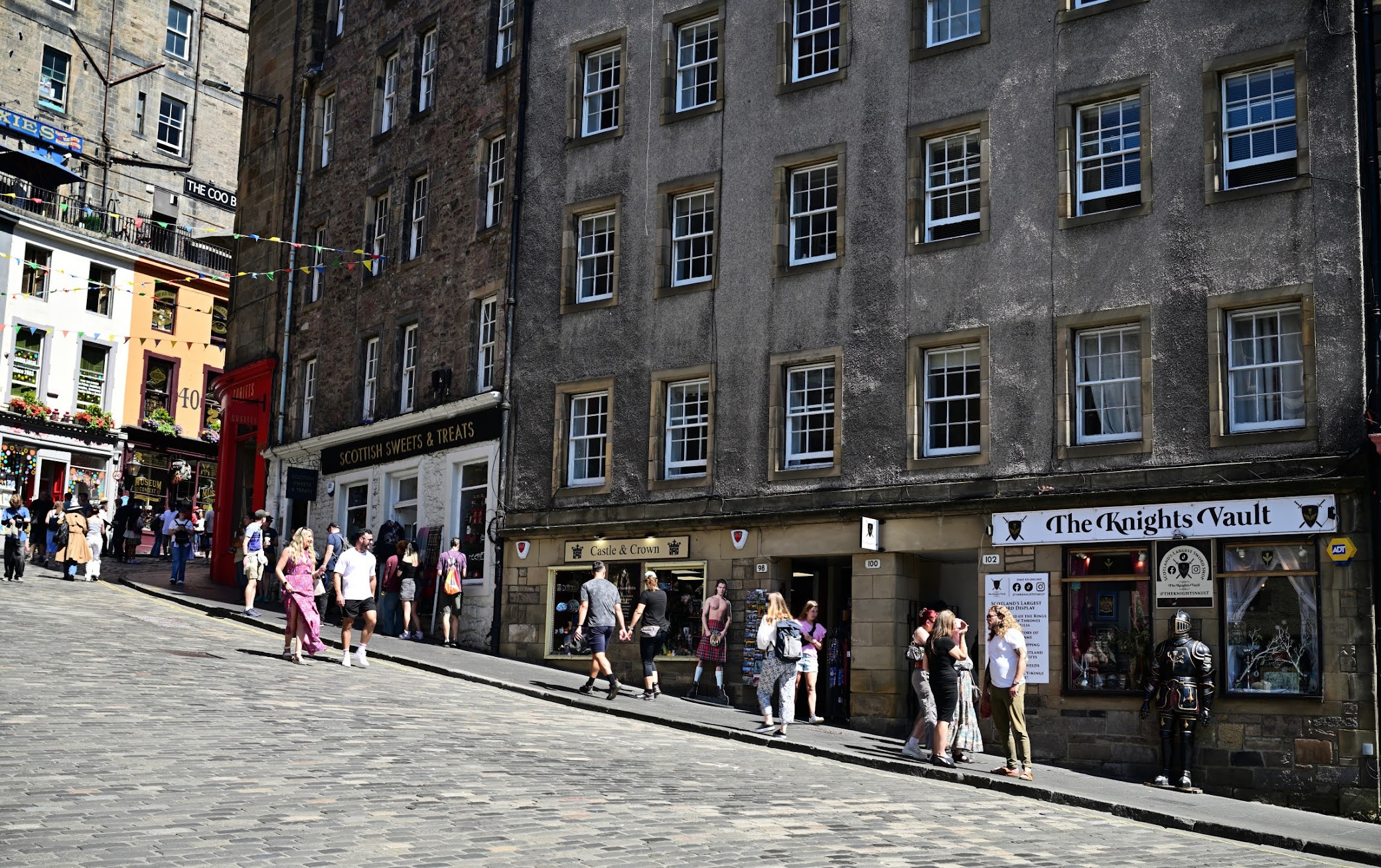 Die Stadt ist mit etwa 525.000 Einwohnern nach Glasgow die zweitgrößte Stadt Schottlands und es gibt dort soviele Sehenswürdigkeiten, Museen, Gebäude etc., daß ein Tag gar nicht ausreicht um alles zu erkunden. Da wir grundsätzlich eher ländliche Gegenden bevorzugen und uns der Trubel von Großstädten weniger anzieht, entschieden wir uns für eine bequeme Hop-On-Hop-Off-Bustour – und waren damit sehr zufrieden. So konnten wir ganz entspannt einige Highlights mitnehmen und die Atmosphäre der Stadt aufsaugen. Edinburgh blickt auf eine sehr lange und bewegte Geschichte zurück, die den Rahmen dieses Reiseberichts sprengen würde. Daher beschränken wir uns an dieser Stelle auf einige fotografische Impressionen. Wie zu erwarten, herrscht in der Stadt reger Betrieb, und Touristen aus aller Welt bevölkern die Straßen.