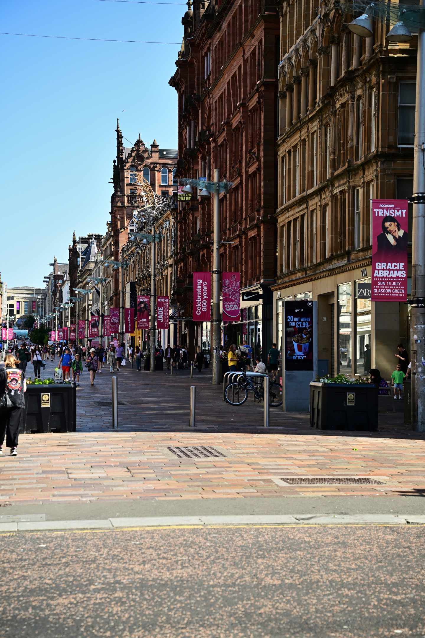 Glasgow liegt am Fluss Clyde und ist nicht nur die größte Stadt Schottlands, sondern nach London und Birmingham auch die drittgrößte des Vereinigten Königreichs. Bereits seit Jahrtausenden leben Menschen in der Region – der Fluss bot ideale Voraussetzungen für Fischfang. Heute ist Glasgow vor allem als ehemalige Arbeiterstadt bekannt, beherbergt aber zugleich vier Universitäten und ein breites kulturelles Angebot. Das Großstadtflair gepaart mit regem Tourismus ist hier ähnlich wie in Edinburgh. Auch hier begnügen wir uns daher mit einer Tageskarte für die Hop-On-Hop-Off-Bustour und erkunden ausgewählte Sehenswürdigkeiten.